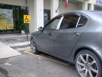 Another disabled person wannabe..Once again this picture was taken today by Mosmin in Maybank Alam Mesra branch, just 2 weeks after I blogged about the same incident right at the same place. What is wrong with this person? Why must you park at disabled car park while you are not a disabled person? Do you wish to become one? Do you know that it's easier to become disabled person than die at the scene? Do you know that you can custom your level of disability by choosing which part of spine bone you want to be crushed or broken into two??